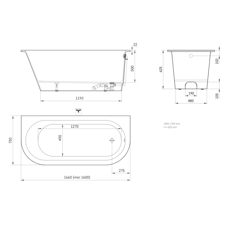 | Length (depth) mm | 1660 |