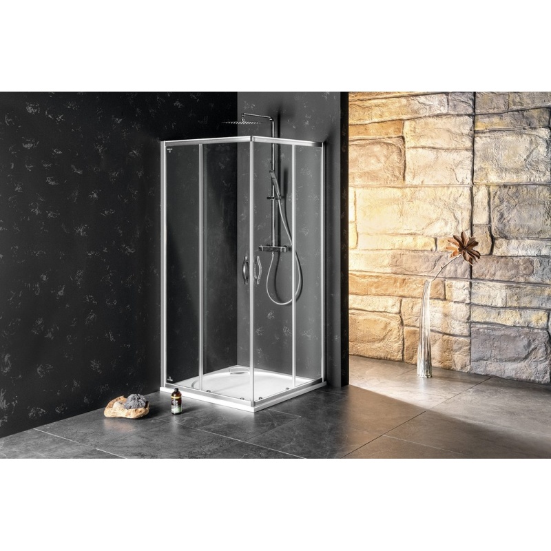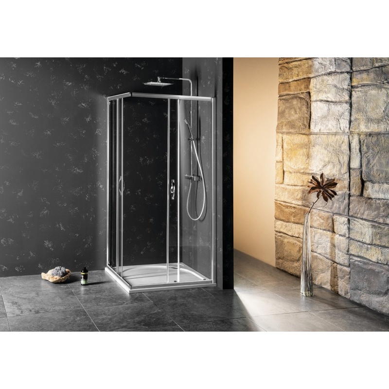 - By combining a side wall and a door, you get a rectangular / square screen - a choice of sliding and pivot doors
