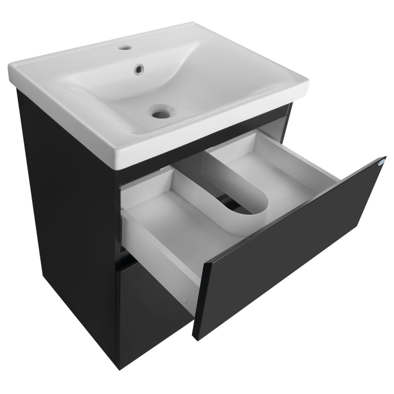 Washbasin cabinets are equipped with retarding pull-outs with Hettich tightening.