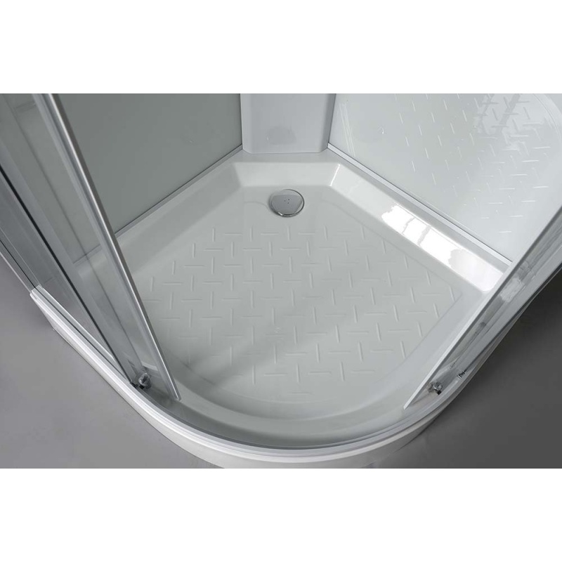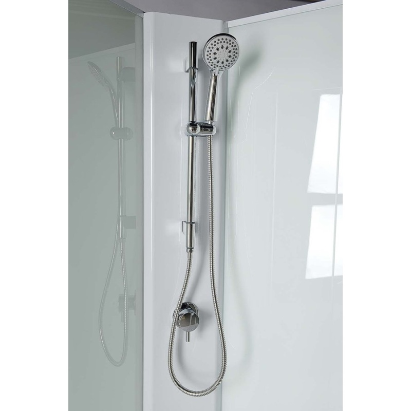 | Materjali kirjeldus | Dušinurgas on dušilift, käsidušš ja kangsegisti.Küljed ja uksed on läbipaistvast ja tagaseinad valgest turvaklaasist. Dušialus on valmistatud akrüülist. Sifoon kuulub komplekti. Toode tarnitakse osadena. |