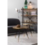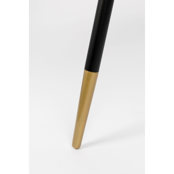 | Material description | MDF table top with ash wood veneer in walnut colour finish (stained& lacquered) and gold painted iron edge. Black powder coated legs with gold painted feet on plastic caps. |