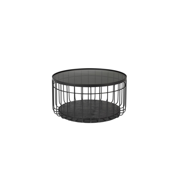 | Material description | Powder coated black iron frame. Black lacquered fir wood veneered MDF bottom plate. Black tempered glass table top.. Table Top: 3,5 cm. |