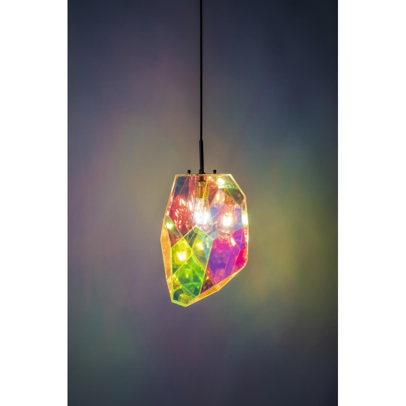 | Material description | Holographic coloured acrylic shade. Black painted iron base. Black textile cable. |
