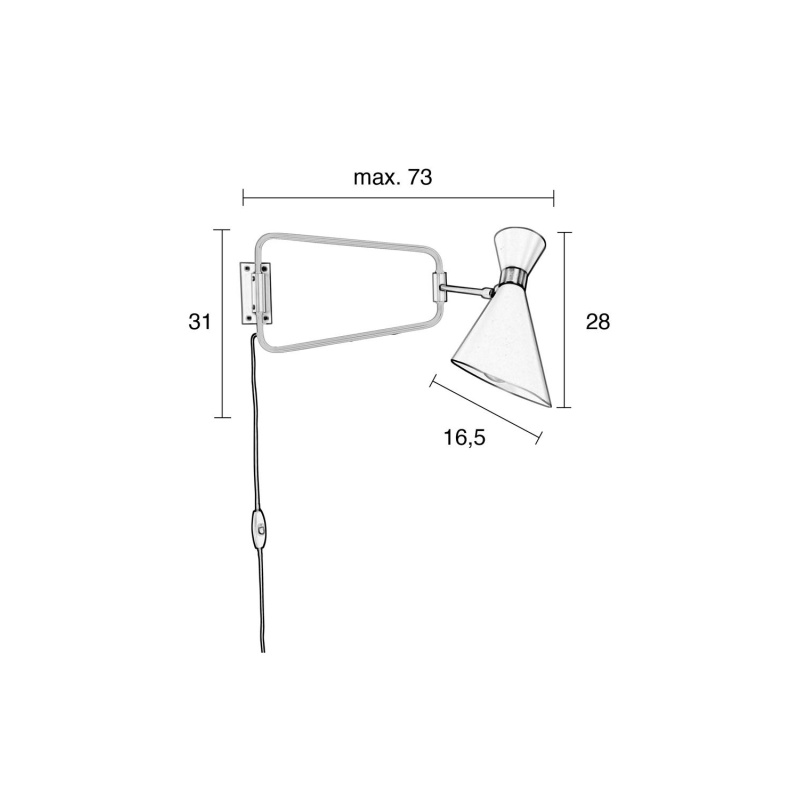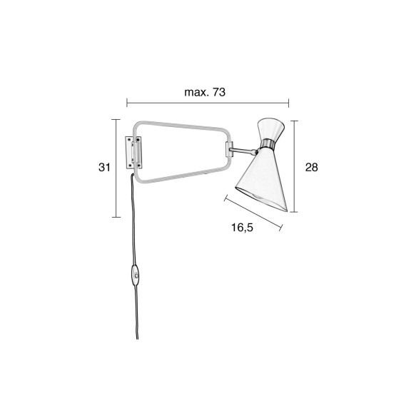 | Material description | Iron powder coated shade and brass plated body and hinges. Powder coated aluminium base and textured black cable. Tiltable shade. |