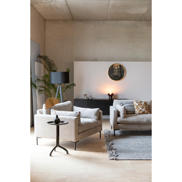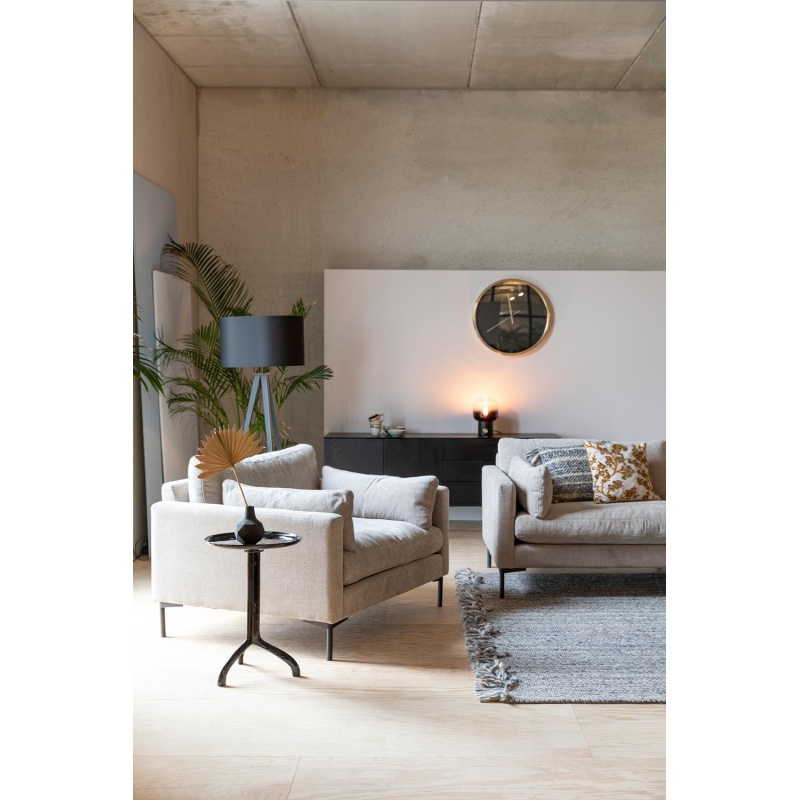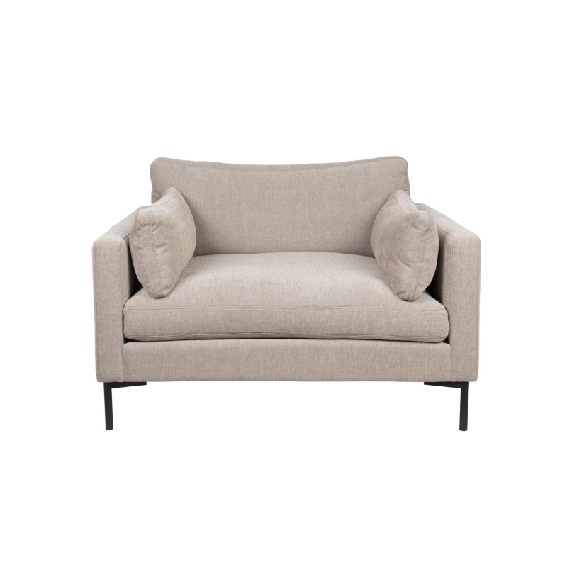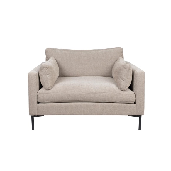 | Material description | Mixed fabric upholstery ( 65% polyester, 35% acetaat), High resilient PU foam, no-sags suspension. Mixed wood frame (chipboard, hardboard, plywood). Powder coated steel legs.Cushions with removable covers - Dry clean only |