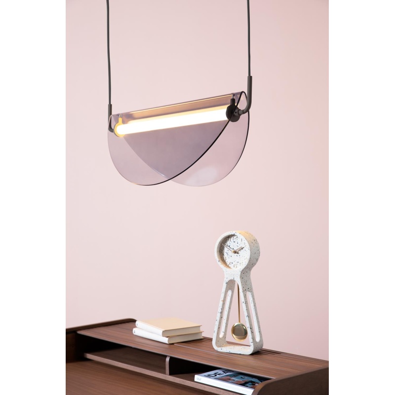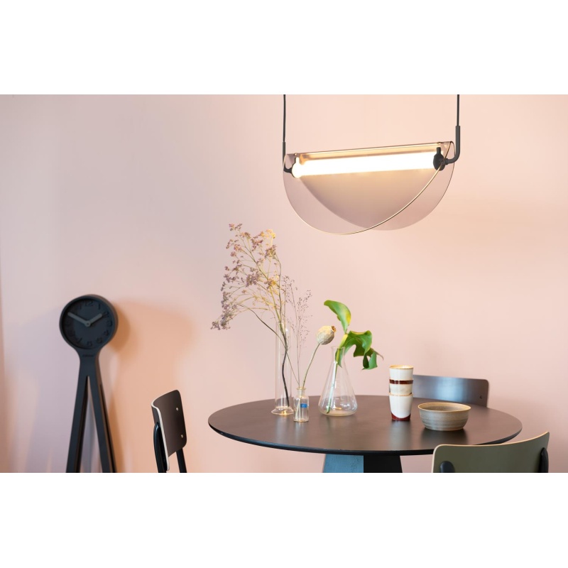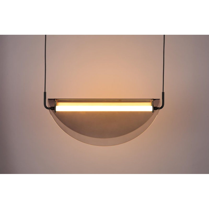 | Material description | Lacquered iron body and canopy. Non tempered smoke coloured glass shade. Black textured polyester cable.Built-in 11 W LED light - Not Dimmable - Lumen: 720 - Kelvin: 2700K - Lifetime more than 35.000 hours |