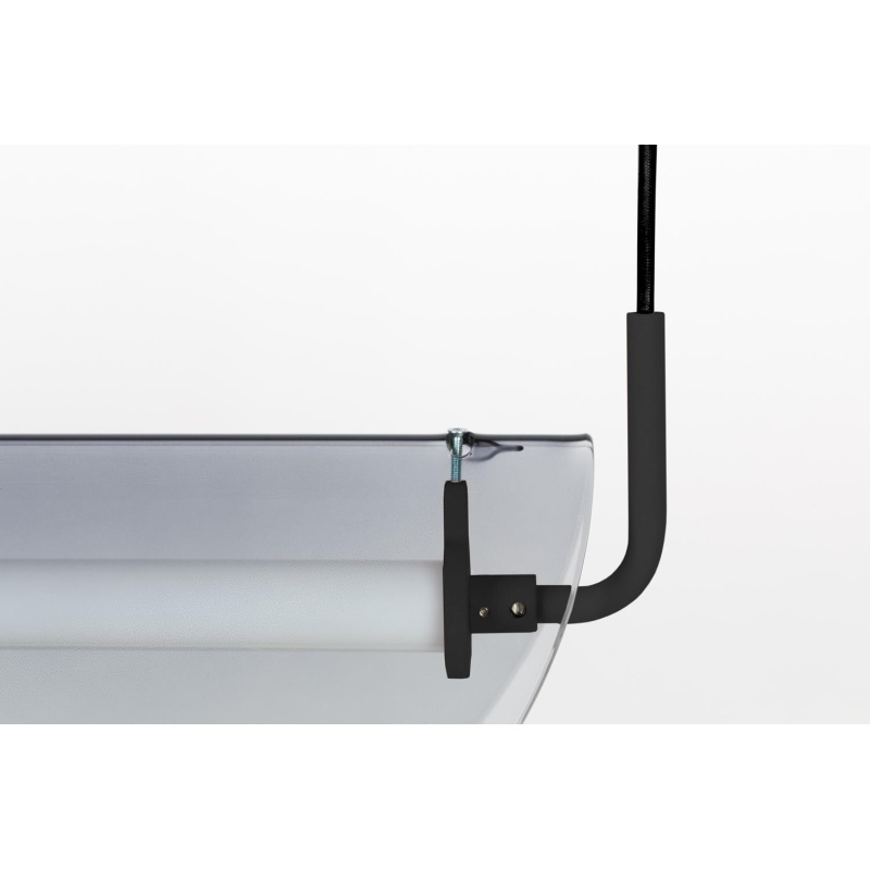 | Materjali kirjeldus | Lakitud metallraam ja kuppel. Karastamata klaasist suitsuvärvi lambivari. Must polüesterkattega kaabel. Sisseehitatud 11W LED valgusti - mittereguleeritav - Luumen: 720 - Kelvin: 2700K - Kasutusaeg pikem kui 35000 h. |